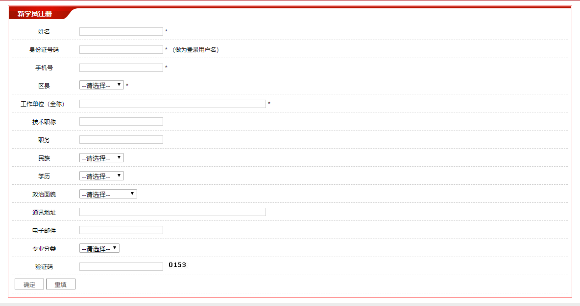 如果您从未参加过本平台专业技术人员继续教育网络培训,请先注册用户,点击登录窗口的“新用户注册”,进入注册页面。